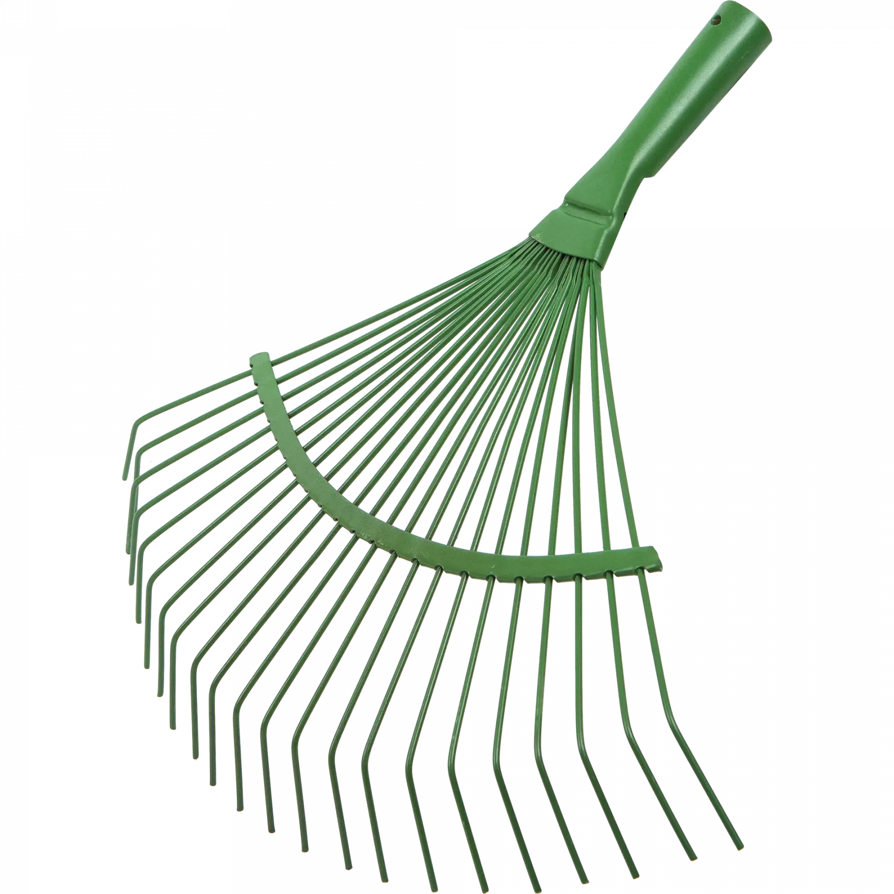 Грабли веерные — ручной сельскохозяйственный инструмент, садовый инвентарь. Служат для очищения территории, сбора опавших листьев и скошенной травы, выравнивания грядок, разрыхления и аэрации почвы. Специальная поперечная пластина продлевает срок службы граблей. Зубья из толстой проволоки способствуют тщательному сбору листвы и мусора, препятствуя при этом повреждению проросших растений. Купив грабли веерные, вы приобретете надежного помощника, который не только сделает сад чистым и уютным, но и обеспечит доступ воздуха и света к почве.