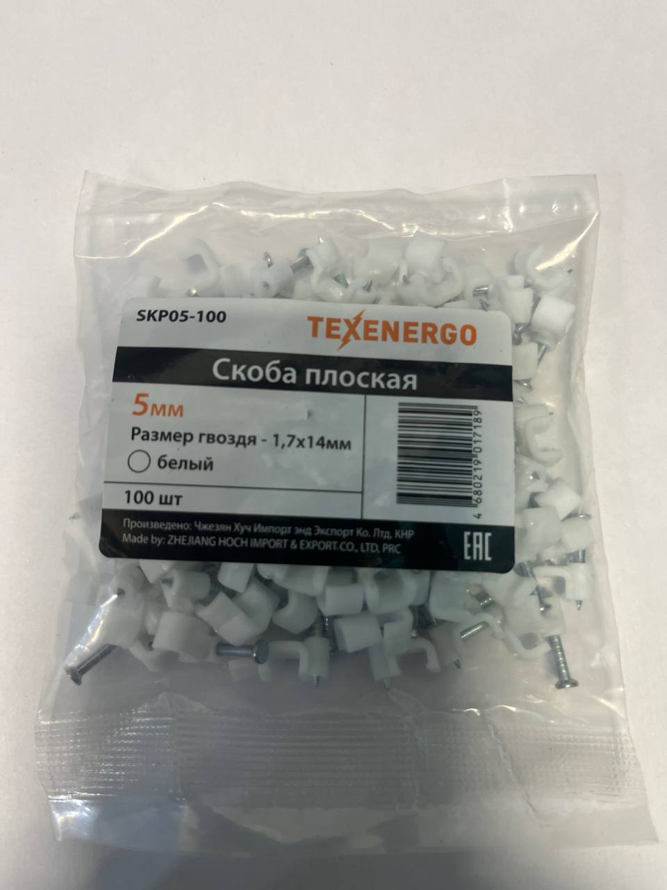 скоба плоская с гвоздем 5мм в упаковке 100шт