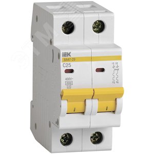 Выключатель автоматический двухполюсный 25А C ВА47-29 C 4.5кА MVA20-2-025-C IEK